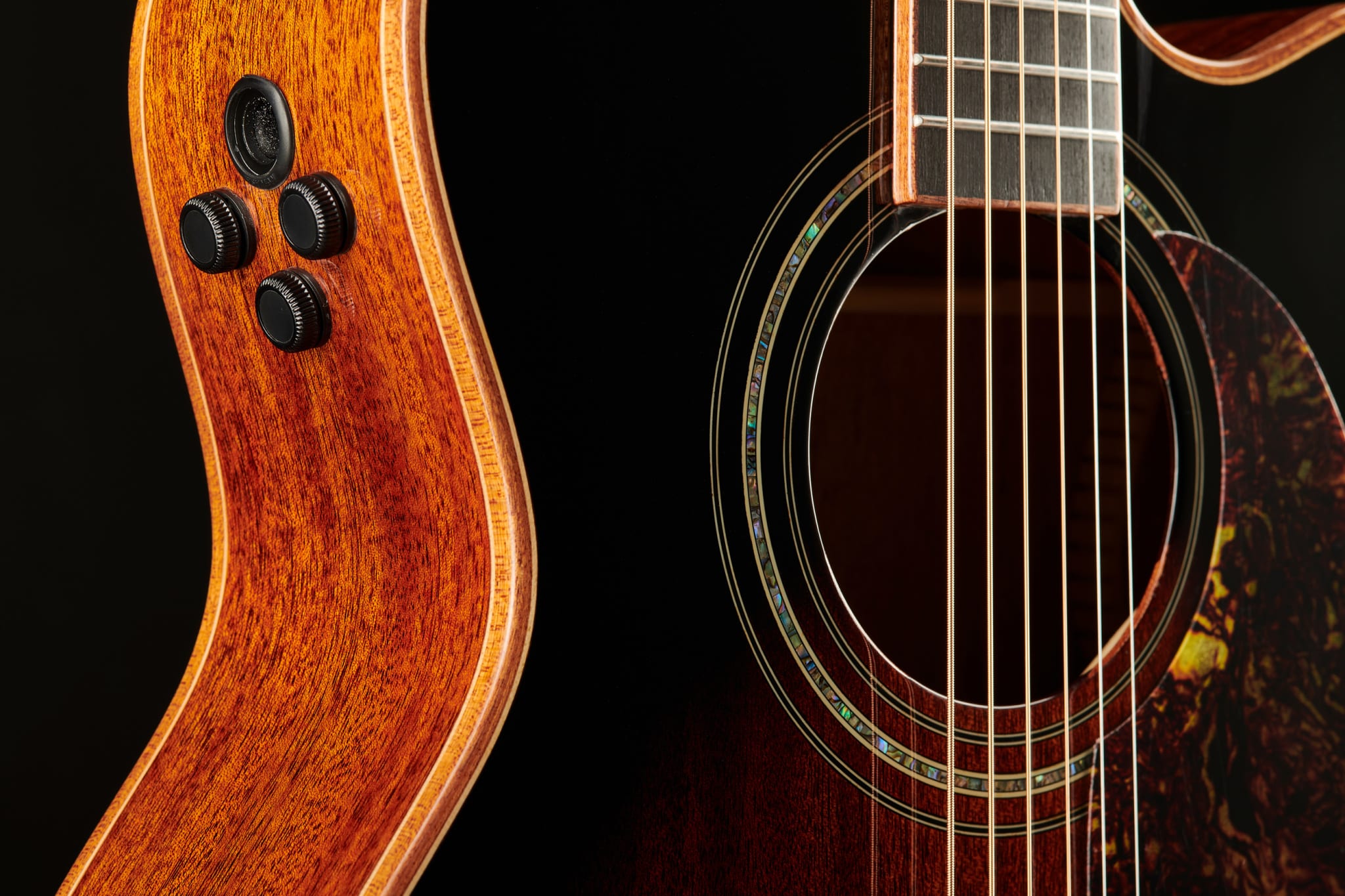 Just like its larger siblings, the new CLC-650SM-CE is also available in either Black or Vintage Sunburst finishes. The body A-grade African mahogany body comes with a Venetian-cutaway and a comfortable armrest. This is quite rare in this price range and a great feature that, once played, you would not want to be without. The body is framed by a beautiful wooden binding and rounded off by an abalone rosette. The neck is made of okume, while the composite fingerboard has some elegant 6 mm mother-of-pearl inlays.